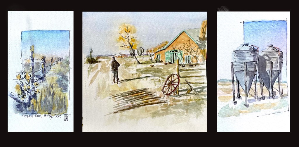 Sketching while away from home encourages me to try new approaches. This time, ink and light washes with some dry brush stroke work